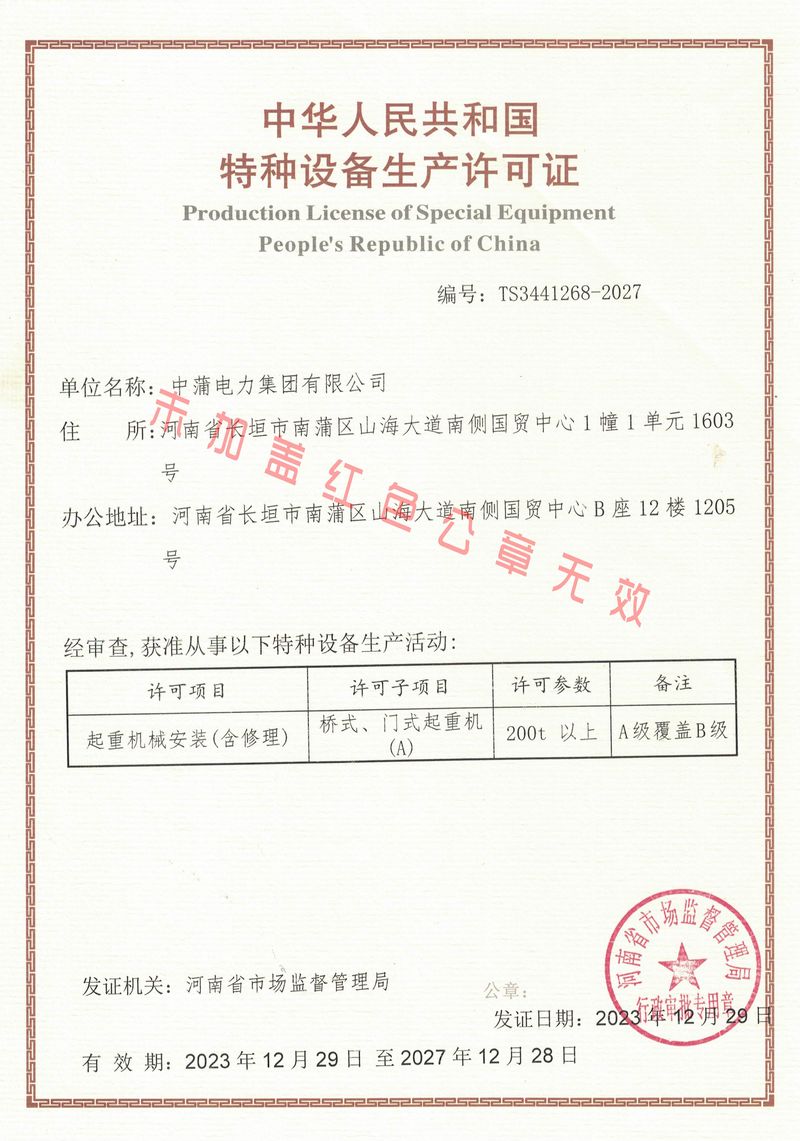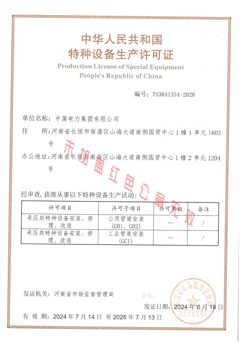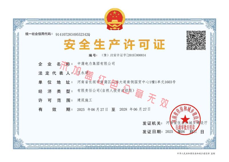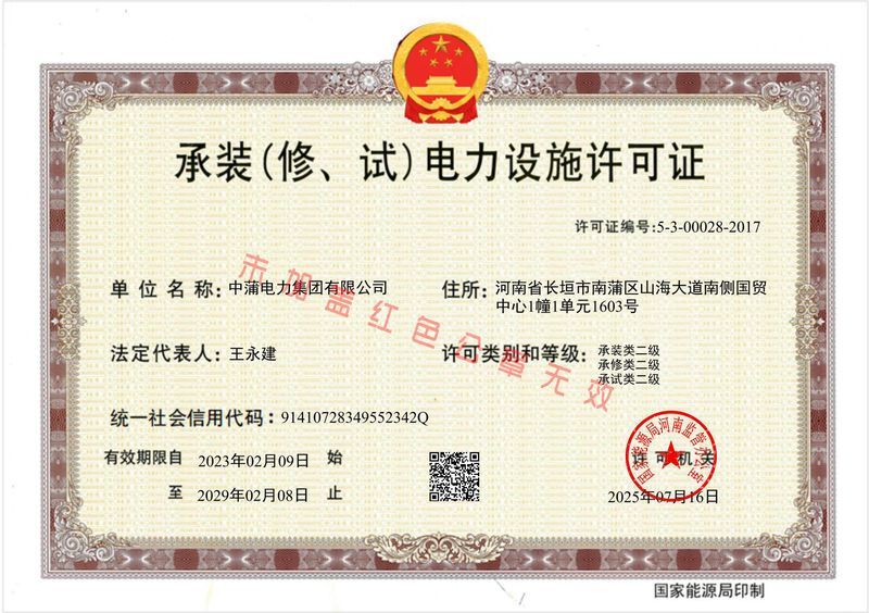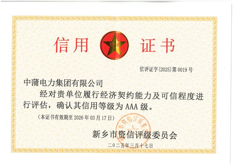 资质荣誉中蒲电力 · 精选品质